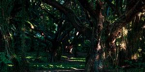 Towering trunks and twisted roots create a cathedral of stillness in Maui's northern jungle. Every shadow tells a story.