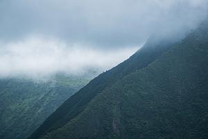 The mountains breathe in silence as clouds drape themselves across their slopes. Shot from the Waihe'e Ridge Trail, this piece carries the quiet intensity of a place lost in time.